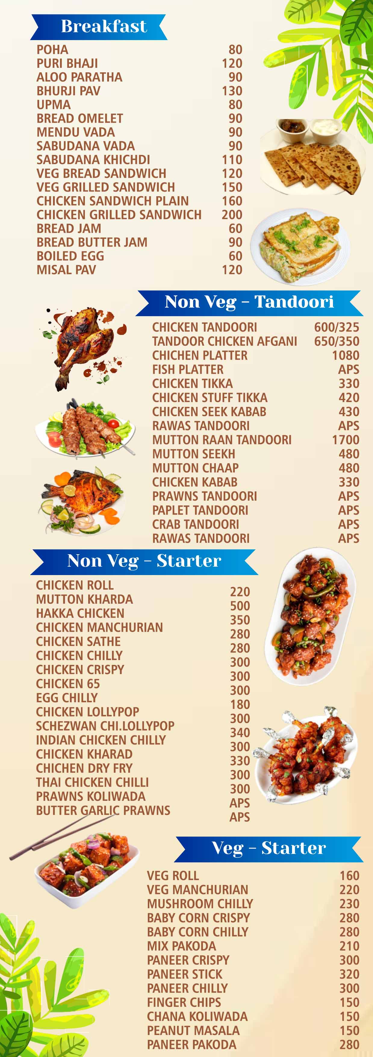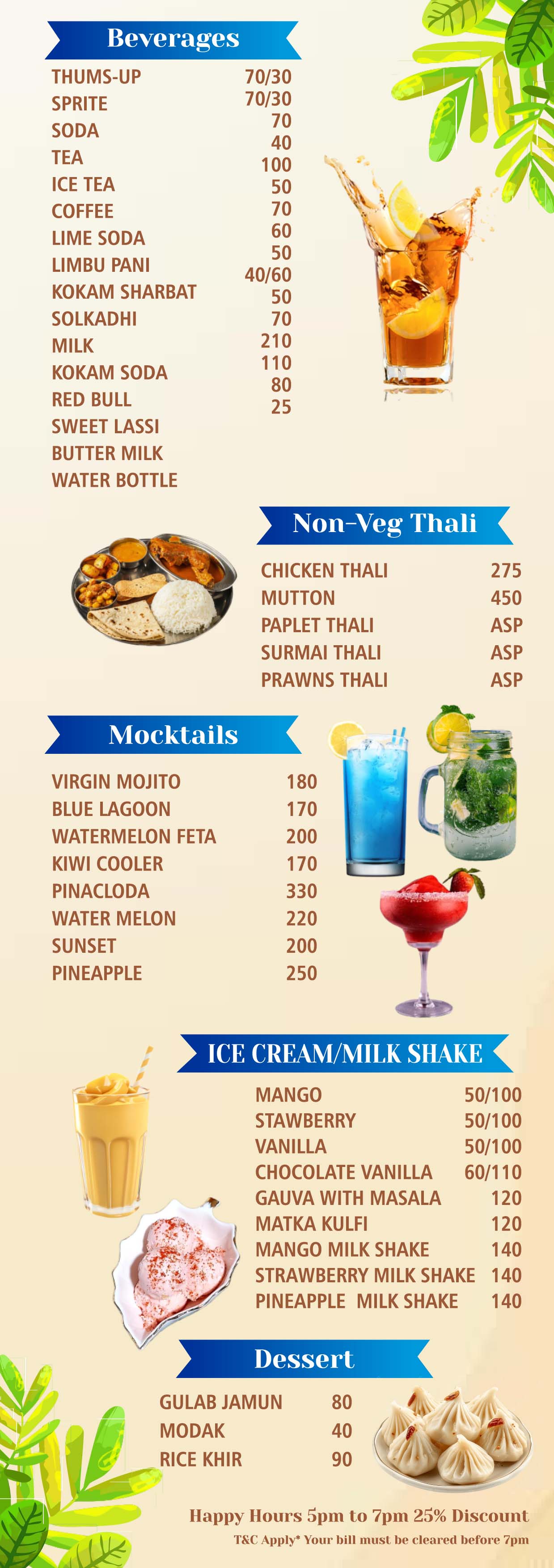 At Eat On Beach, every dish is crafted to bring you the authentic taste of Konkan along with your favorite Indian, Tandoor, Chinese, and Continental delights. From sizzling seafood and spicy curries to refreshing mocktails and desserts — our menu has something for everyone to enjoy by the sea.